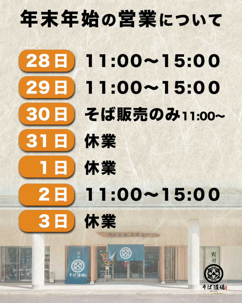 そば道場 美津島店の2025年から2026年にかけての年末年始において